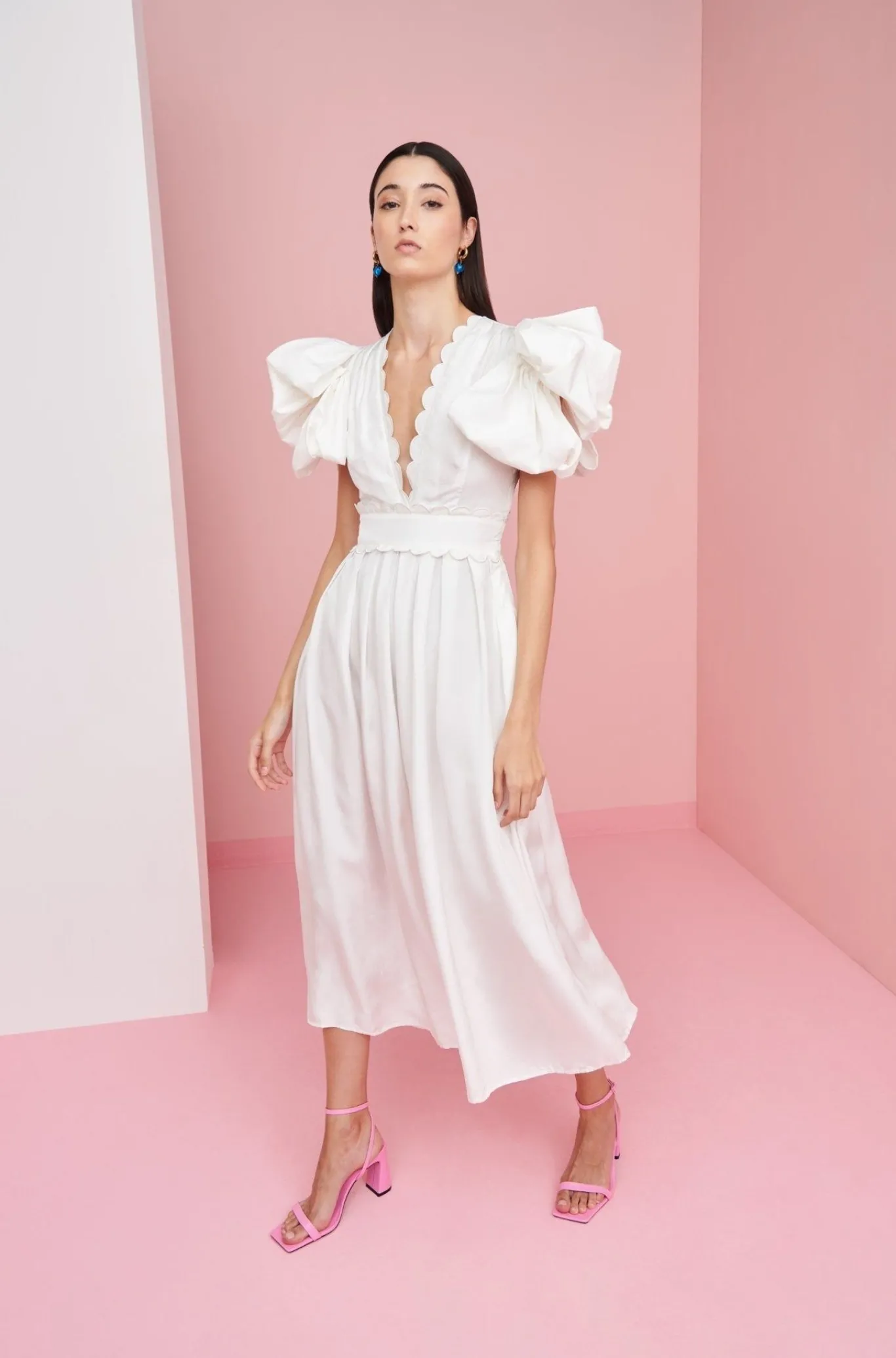 Forever A Classic, This Long, White, Deep V-Neckline And Adjusted Waist Number Is A Summer Wardrobe Need. Elgant, Classic And Stylish All In One!