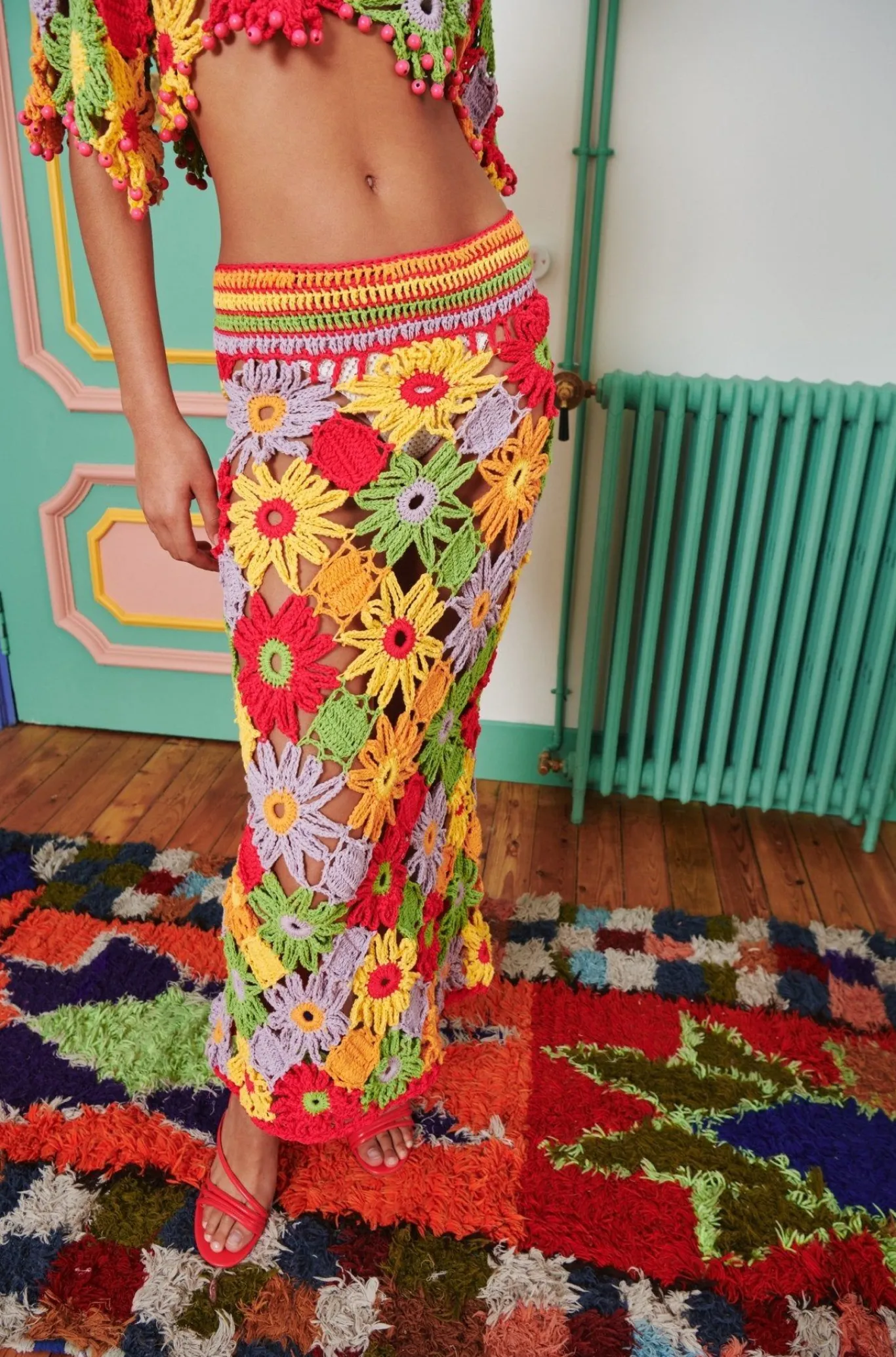 Radiate Sunshine Vibes With Our Open Floral Crochet Maxi Skirt With Zip Back Closure That Hugs Your Hips. Pair With The Matching Super Crop Top. This Outfit Captures The Sense Of Pure Happiness In Every Stitch.