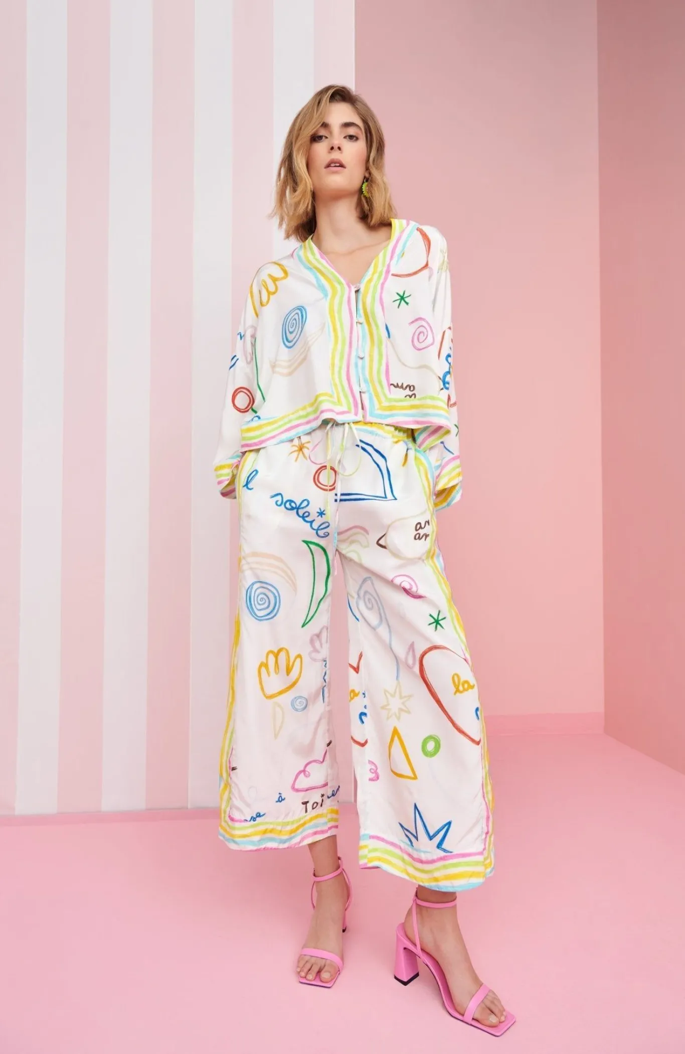 Our Nebula Top Works Best With A Side Of Lazy Summer Mornings And Iced Coffee By The Pool. This Elegant, Flowy White Printed Button Down Shirt Is The Perfect Pool Day Accessory. Looking To Complete The Look? Check Out Our Nebula Pants Too!