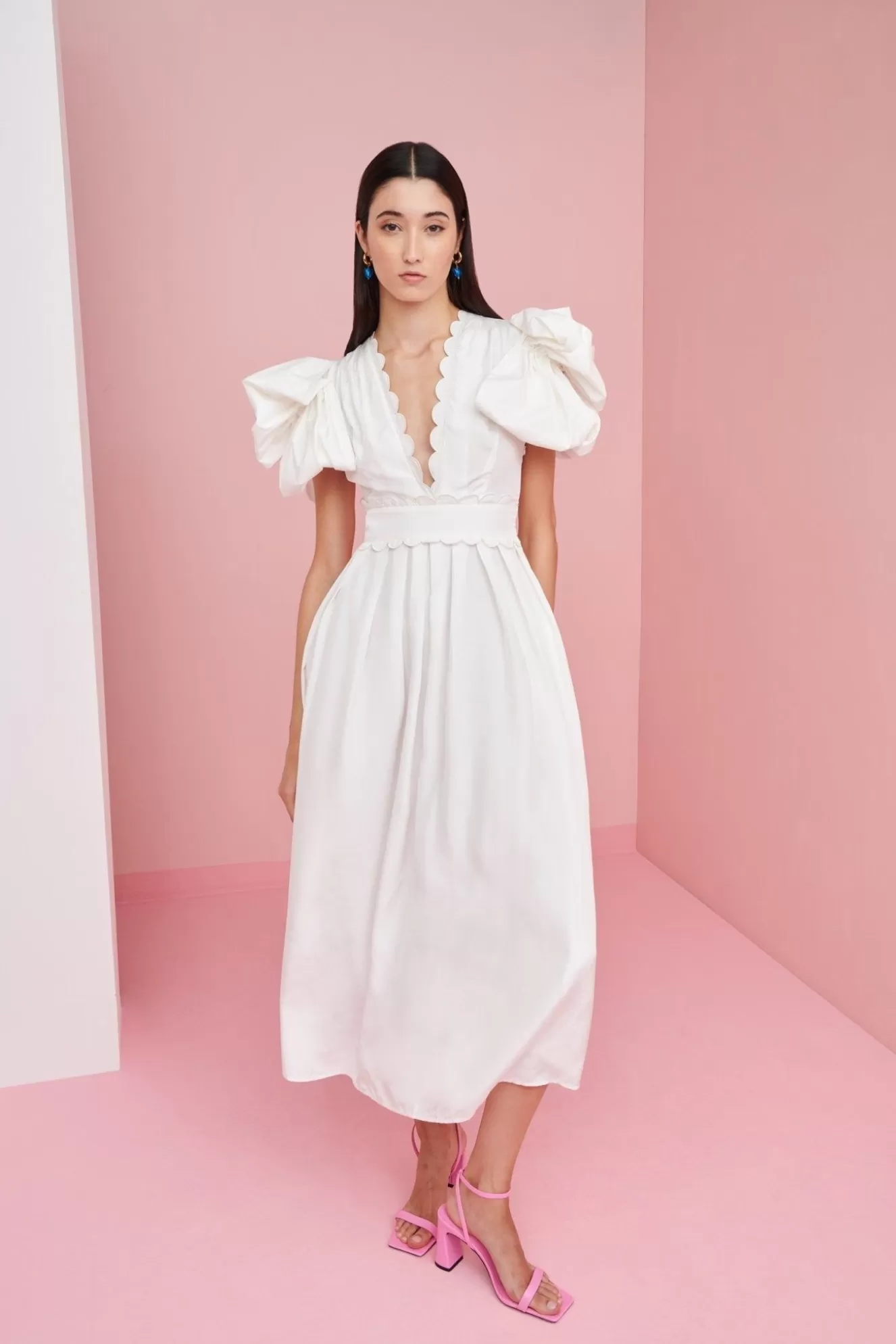 Forever A Classic, This Long, White, Deep V-Neckline And Adjusted Waist Number Is A Summer Wardrobe Need. Elgant, Classic And Stylish All In One!