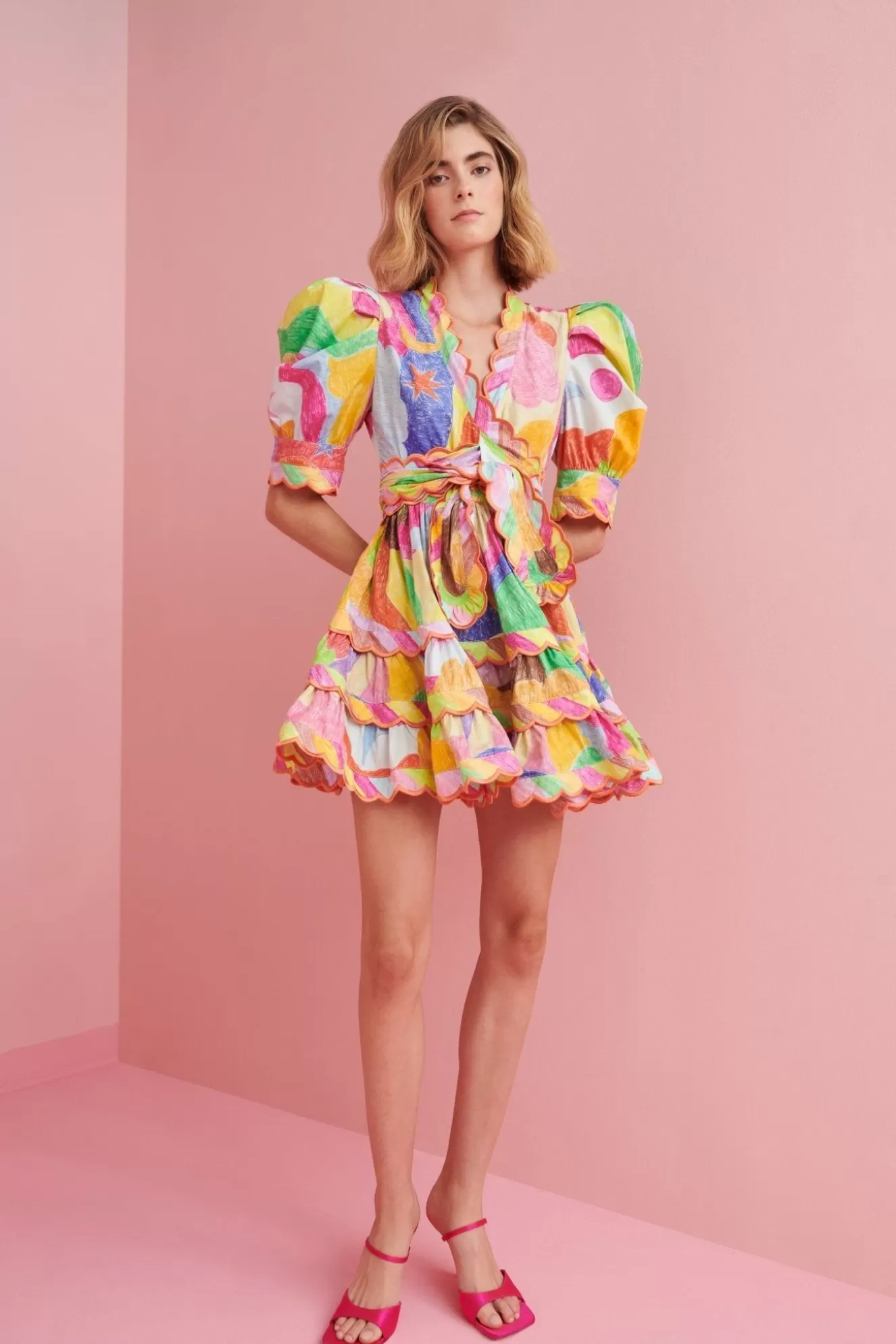 Colorful Printed Mini Dress, Featuring Puff Sleeves, A Belt And Our Characteristic Scalloped Edges. This Piece Is The He…
