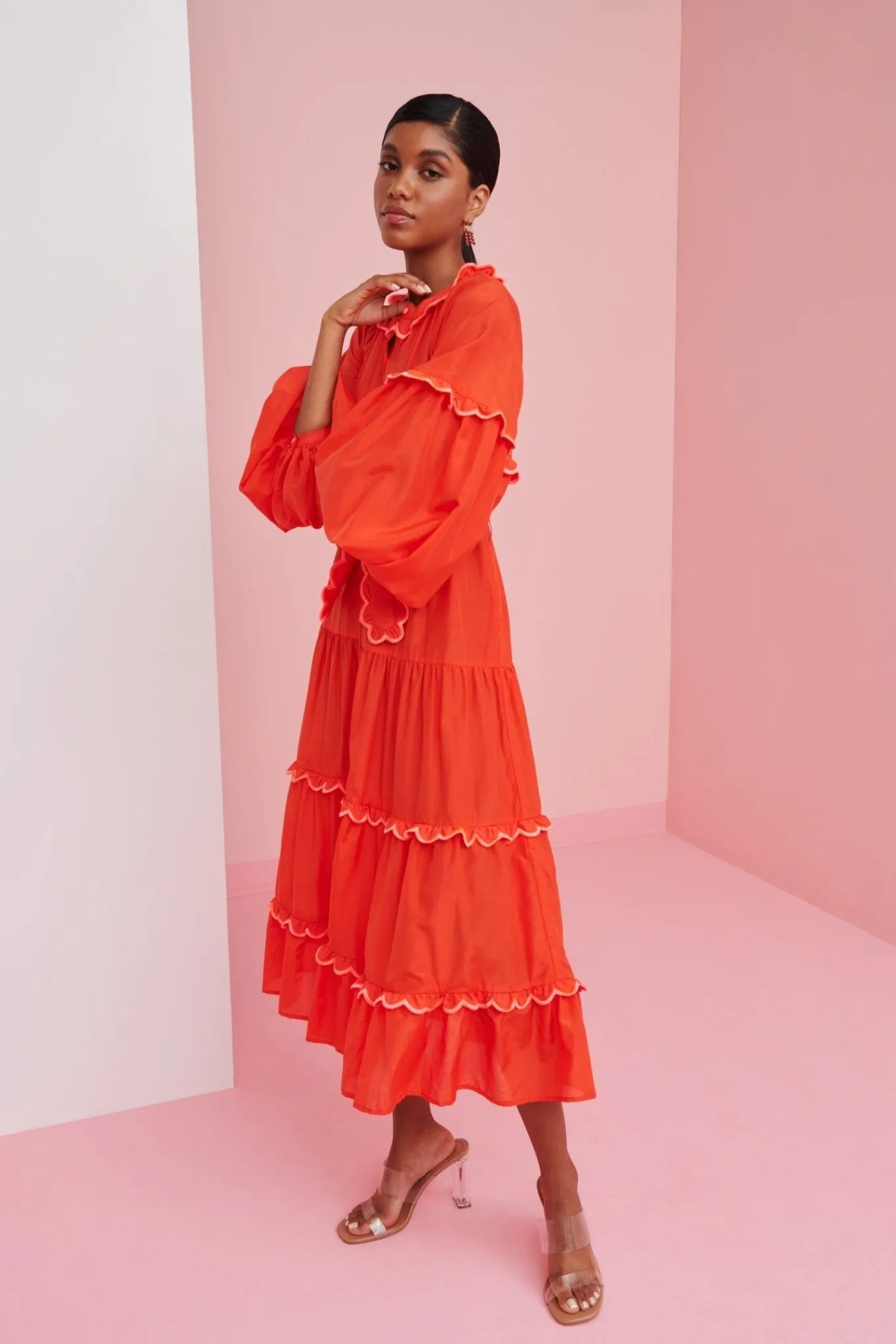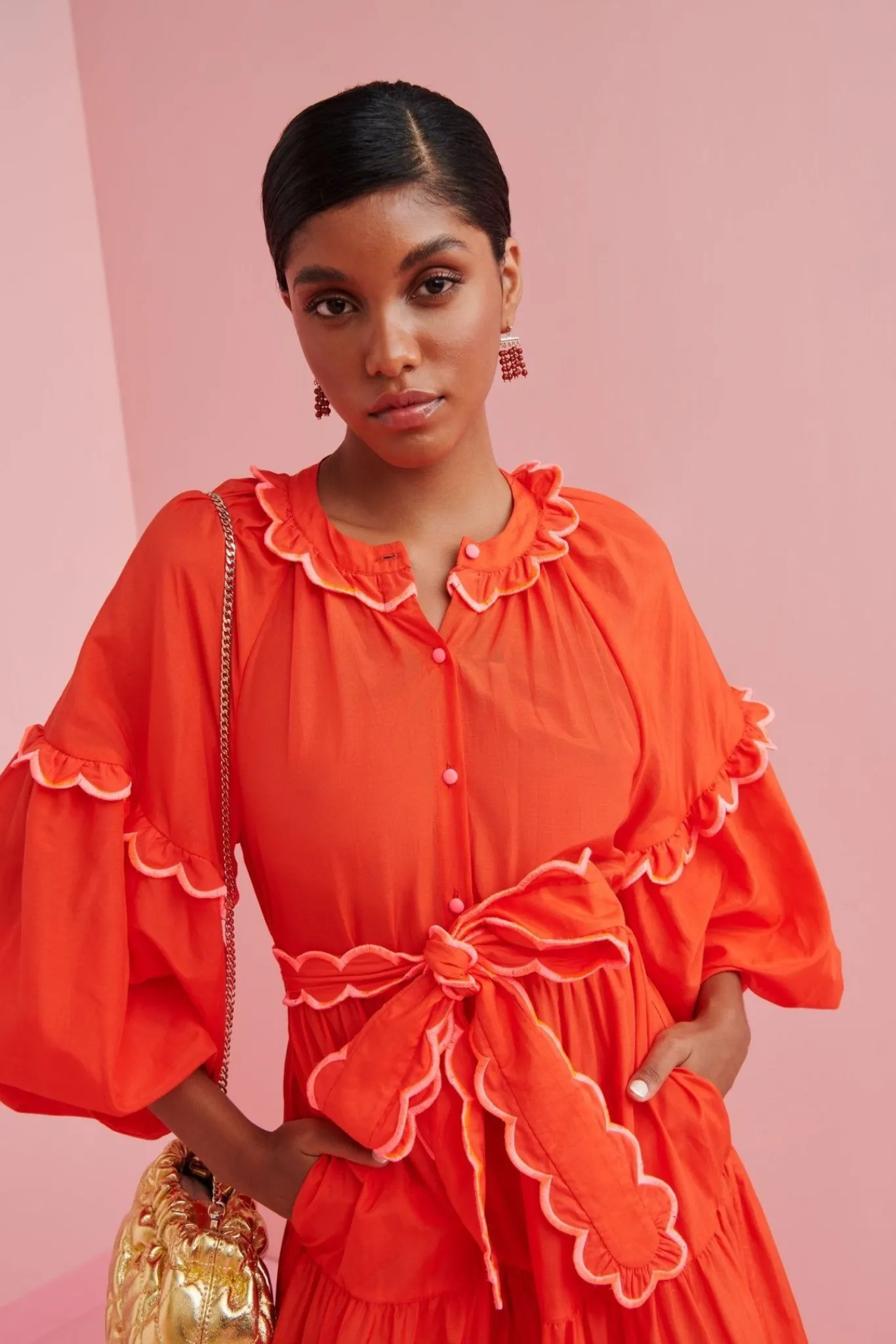Long, Flowy Deep Orange Dress. The Adjustable Waist And Breathable Fabric Makes This The Perfect Choice For Any Hot Summer Day.