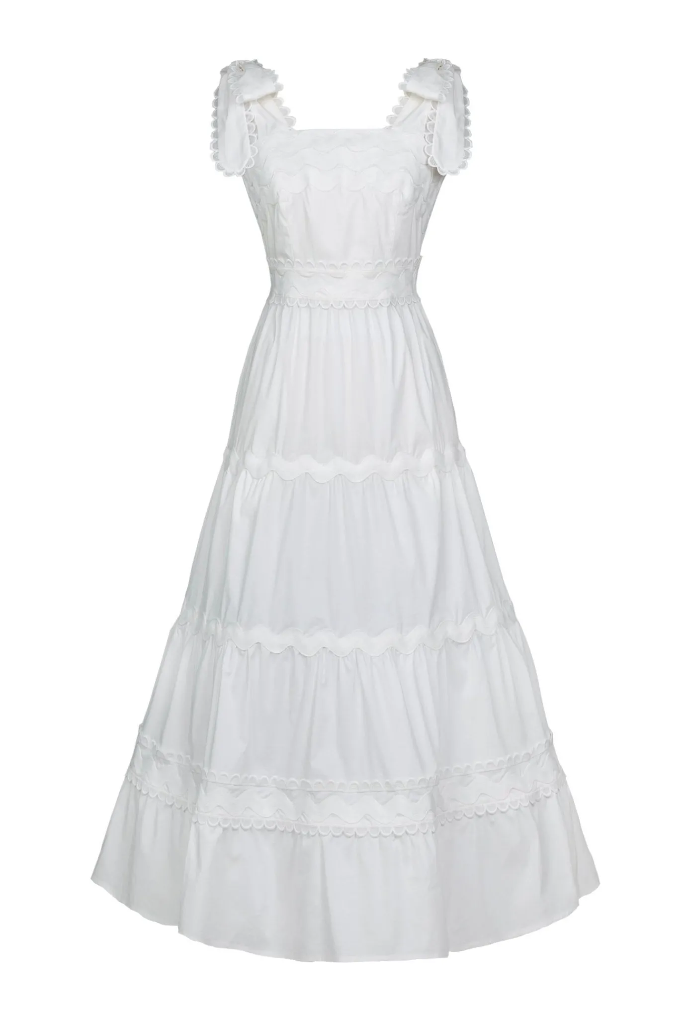 Midi Strappy White Dress. The Embroidered Details Make This Piece The Perfect, Fun Summer Must-Have.